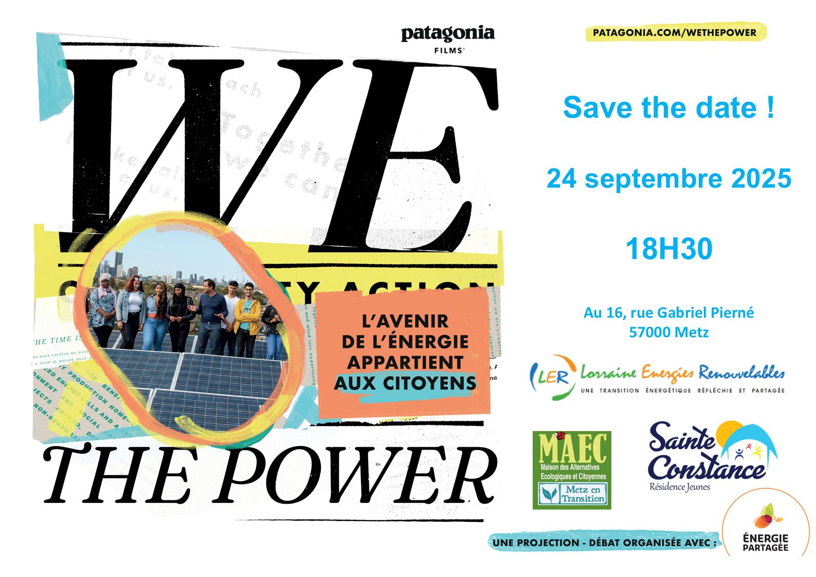 Résidence jeunes Sainte Constance 16 rue Gabriel Pierné, MetzVenez écouter, échanger, apprendre et débattre Autour du film "We The Power" Imaginez renverser le système énergétique traditionnel et redonner le pouvoir de la production d'énergie propre à vos voisins. We the Power suit des amis, des familles et des visionnaires dans leur parcours pour faire tomber les obstacles législatifs et reprendre le pouvoir des […]