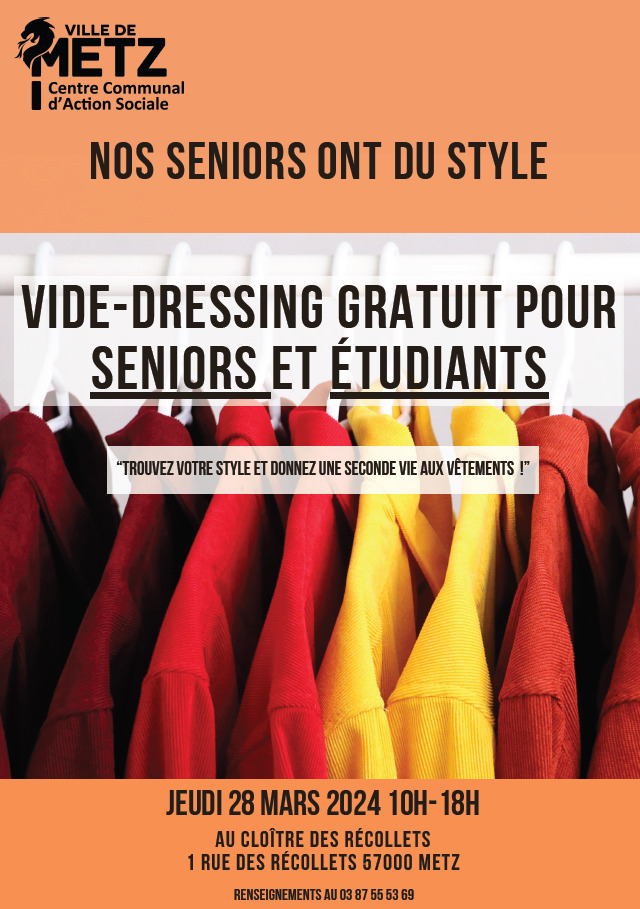 Cloître des Récollets 1 Rue des Récollets, Metz, FranceTrouvez votre style et donnez une seconde vie aux vêtements ! Vide-dressing gratuit pour seniors et étudiants.