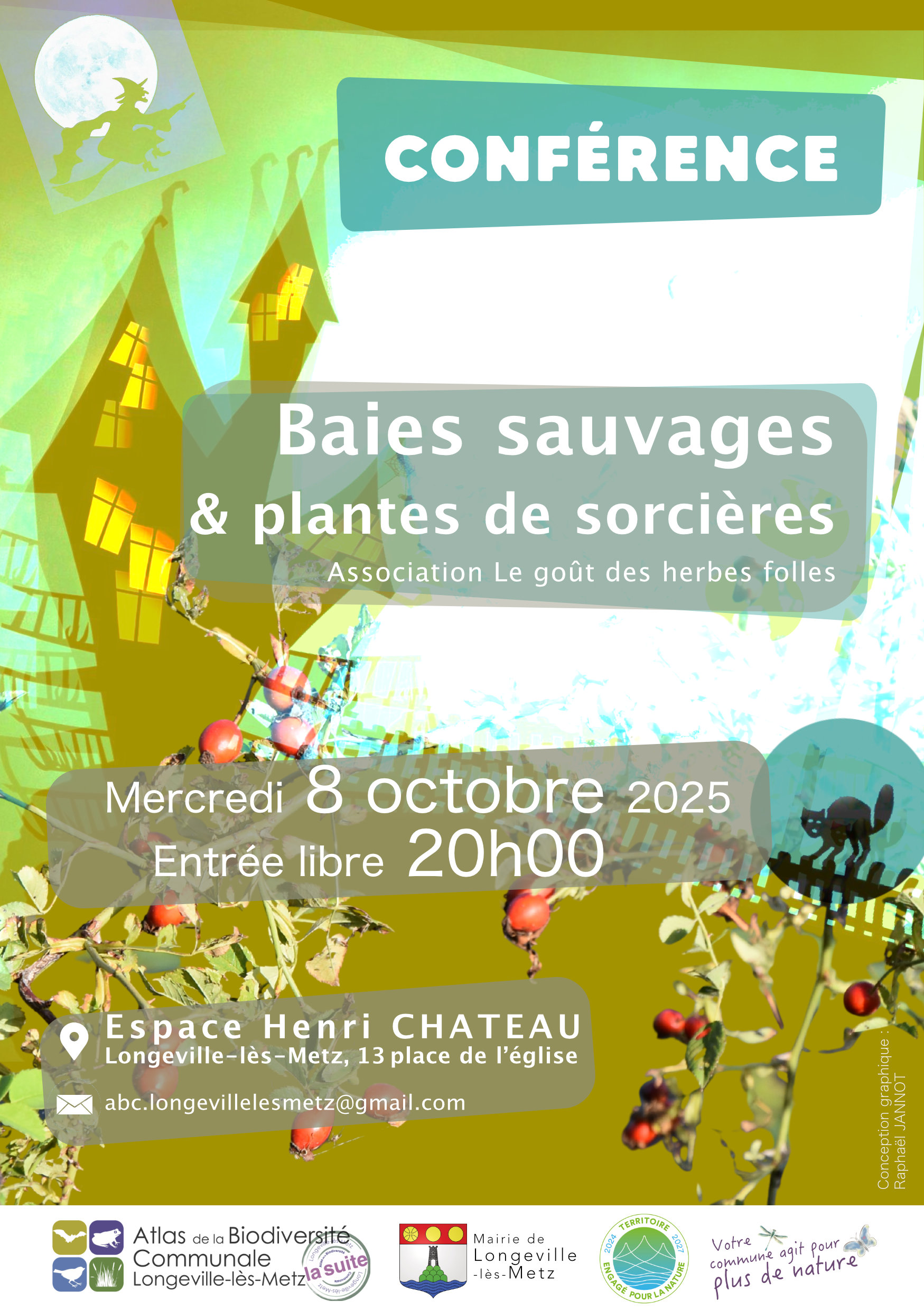 Dans le cadre de son Atlas de la Biodiversité Communale, la Mairie de Longeville-lès-Metz vous propose une conférence sur les baies sauvages et les plantes de sorcières. L’association Le gout des herbes folles vous fera découvrir les ressources de la nature à travers différentes baies sauvages que l’on peut trouver ainsi que certaines plantes de sorcières aux vertus spécifiques. Un avant-goût d’Halloween.